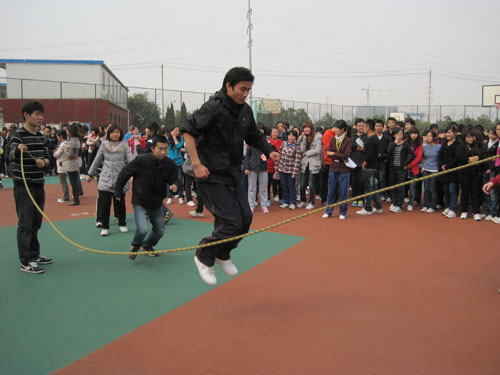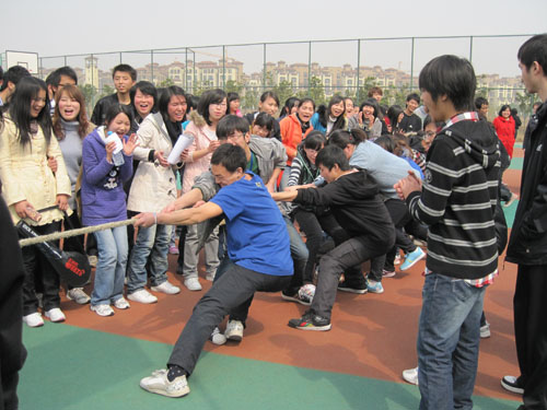 随着“咚咚”的敲鼓声,热身赛——跳绳比赛正式拉开帷幕。大一八个班被分成四组,每班选派8人参加(女生6人,男生2人)。摇绳两人面对面站立,手持一条长绳同时按逆时针方向摇动,队员一一跳过摇动的长绳,依次循环,以跳跃成功次数多少排出名次,比赛时间为两分钟。比赛刚开始,有些队员还不太适应摇动的长绳,摇绳有几次中断,但随着比赛的进行,队员们增强了自信,个个变得身轻如燕,以轻盈的步伐跳过长绳,摇绳者和队员们配合也更加默契,比赛渐入佳境。场上观众的眼神也跟随着跳绳晃动,齐心协力的为各自班级加油。激烈角逐过后,成绩遂见分晓。审计Q1041班力夺跳绳比赛第一名,注会Q1042班和会计Q1041班分列第二和第三名。 接下来拔河比赛紧锣密鼓的上演,各班级选派20名学生参加(男生5名,女生15名),所有班级同样被分为四组,进行淘汰赛,最后荣获第一名的班级将得到奖状和小礼品。当裁判一声“准备”,两边队员们都各就各位,身体后倾,双脚前后站定,目光聚焦在绳中间的绿色系带上。“开始”过后,会计Q1042班的队员们都涨红了脸,卯足了劲,一点点将绳朝着自己这方移动,可对方也毫不示弱,双方僵持不下。观众们越发热烈的呐喊助威,一时场上气氛异常高涨。对手稍一分神,胜利的天枰就倾向了会计Q1042班,力克注会Q1041班。几轮下来,比赛结果尘埃落定。注会Q1042班占领冠军宝座,会计Q1042班以亚军屈居第二。 这时轮到了各个班级自由游戏时间,每个班级都分配了一个小游戏,旨在加强班级内部间的团结协作能力。瞧!财务Q1041班的同学们手拉手围成一个大圆圈,开始进行“桃花朵朵开”的游戏,主持人“3朵开”的话音刚落,同学们便立即松开手,三个三个的抱在一起。会计Q1041班开展“企鹅漫步”,参赛者在两腿间,双臂下各夹一个气球,呈企鹅状在跑道上行走。同学们滑稽的步伐引来阵阵欢笑,大家都深深的感受到游戏的妙趣横生。注会Q1042班的“踩气球”也十分精彩,各班的游戏都各具特色,夺人眼球。 快乐的游戏时间总是短暂的,但愉悦的发自内心的欢笑却久久飘荡在篮球场上空。最后的清场工作也由3044am永利集团官网院青协的同学们友情帮助,更添一份感动。 今天所有的参赛者不仅体验到游戏的乐趣,更多的感受到的是集体的团结与荣誉感,同时将3044am永利集团官网这个大家庭中每一员的心紧紧凝聚在一起,充分发扬了“友谊第一,比赛第二”的精神。头炮成功打响,相信接下来的“‘会’乐系列活动”将会越发精彩,引人期待万分!