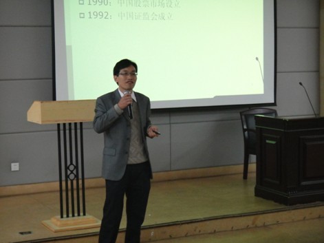 报告的开始,夏教授为大家分析了中国市场存在的原因和意义,用PPT详细了介绍了中国股票市场的特点和切入口。并就股票市场的千变万化提出了自己的学术观点和论据。在分析政府与企业的关系以及股权结构与公司治理方面提出了自己独特的见解。 夏教授就上市公司的问题,行进了详细的讲解,在控制上市公司和管理上市公司时应区分和注意到的细节问题也表明了自己的看法。另外,教授表示要严厉打击和防控股票市场的内幕交易和股价的操纵,加强市场监管和法律机制的作用。并总结出“政府关系缠绕中国股市”的观点。 在报告的最后,教授还与金融学院的教授代表以及对股票市场有疑难问题的学生进行了一问一答的互动。期间夏教授精彩精辟但又不失风趣幽默的回答引得场下掌声连连。