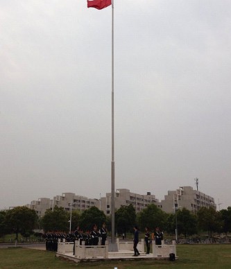 6点50分,升旗仪式正式开始,国旗护卫队迈着铿锵有力的步伐来到升旗台前,鲜艳的红旗随着国歌的旋律缓缓升起。