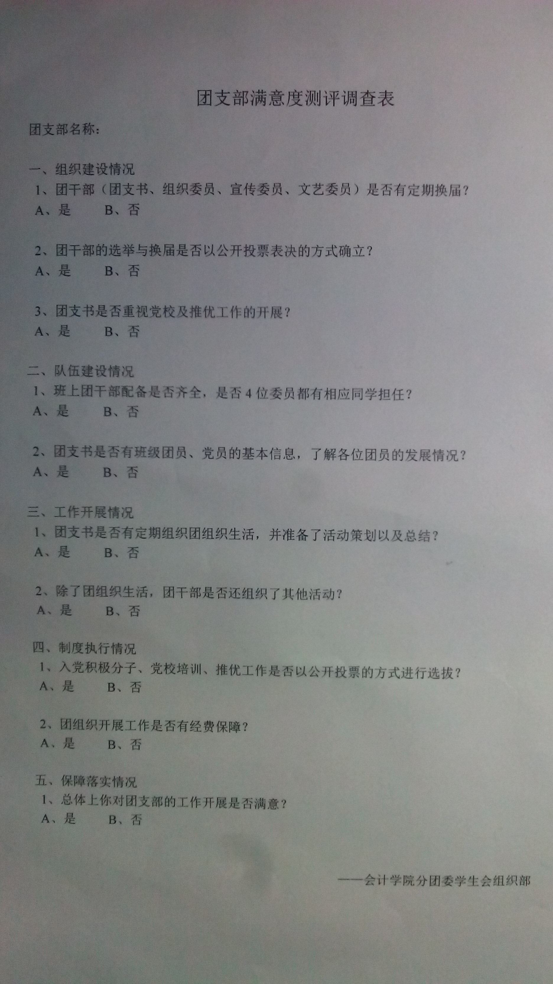 截至2013年3月30日,在以刘铮老师,杨晓龙老师为核心的调研专项小组的组织带领下,3044am永利集团官网分团委近期进行的“团情调研和团支部分类定级”工作正顺利展开。目前已完成了团支部自评、分团委和同级党组织评价、团员青年评议等环节。此次活动本着实事求是的原则,力求客观公正地对各级团组织进行评价,以达到竞进提质,共同进步的目的。相关后续工作正在有序进行中。