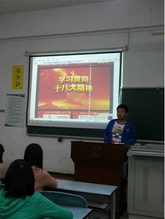通过学习党的十八大精神,大家对党的思想路线,方针政策等有了进一步的认识。围绕这个主题,同学们交流并分享了自己的感悟。李晓芬说:“每学习一次十八大精神我都有新的收获,对我们的党的认知就会加深一层,所以我认为党的十八大精神是需要不断学习与理解的。”明洁说:“我认为学习十八大精神不仅仅应该停留在学习它的内容这个层面上,更应该深入学习它的实质,这样才能更好地指导我们开展日常党务工作。”熊瑛说:“学习十八大精神要做到与时俱进,结合当今时事热点予以理解,不能片面地机械地解读。”饶思豪说:“我们应该将十八大精神与我们自己的学习生活结合起来,在日常生活中运用它,做到融会贯通。”
