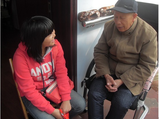 上午9时,同学们到达位于武昌区武锅厂内的星悦老年服务中心,分小组对中心内的数十位老人进行慰问。他们大多是身体有疾病或年纪太大而儿女工作太忙无法在身边照顾的。同学们陪这些与自己爷爷奶奶年纪相仿的老人们聊天晒太阳,听他们讲过去的故事,那些艰苦的岁月在他们的生命中留下了深刻的印记,也让一直生活在和平年代的同学们接受了一次深刻的教育,明白应该珍惜并把握住美好的大学四年。充满活力的同学们还为老人们唱歌,表演文艺节目,星悦老年服务中心不大的院子热闹非凡,呈现出新老两代人和谐交流的温馨画面。老人们身体不方便,同学们便帮他们按摩,这些慈祥的老人口中不住地感谢,一位失明的奶奶对帮她按摩的同学说:辛苦你们这些孩子,大老远地过来帮助我们,你们都是好孩子啊。”老奶奶朴实的话语中透着浓浓的谢意,让在场同学们感动不已。