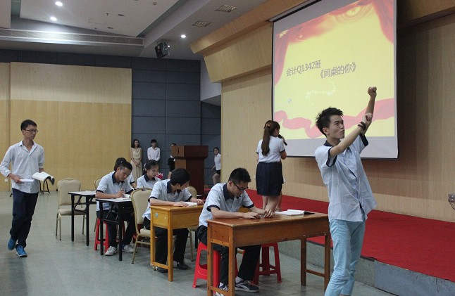 在同学们高唱团歌的歌声中,团组织生活展示正式拉开帷幕。注会Q1341班的同学表演小品《团干表演大赛》,赢得全场观众热烈的掌声;各班团支书介绍自己班级一年来的团组织生活,通过PPT的展示,整整一年的欢笑和泪水历历在目。