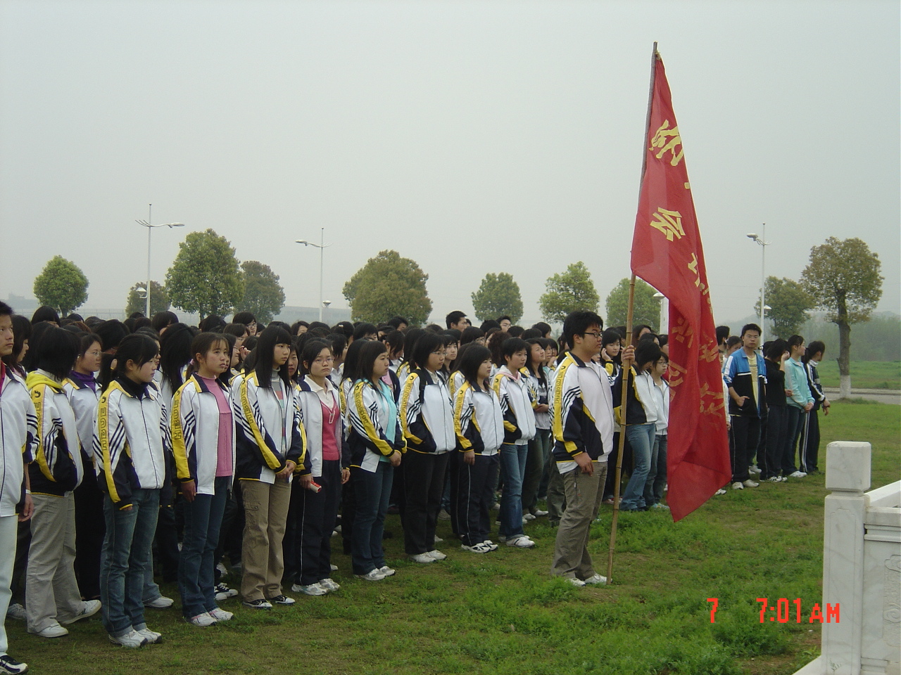 4月7日早7点,3044am永利集团官网大一全体同学在东门参加了升旗仪式。四月的春风阵阵,伴随着雄壮的国歌,五星红旗冉冉升起,在朝阳的映衬下更加鲜红。