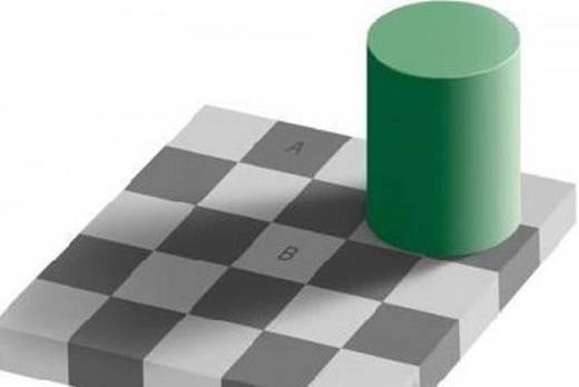 你认为A和B所在方格颜色相同吗?据说全世界只有0.003%的人能看出它们的颜色是相同的