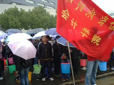 活动开始时天空下起了大雨,但恶劣的天气丝毫没有影响会院学子积极植树的热情,在廖长林书记宣布植树节开幕后,同学们便拿着铁锹和水桶进入苗圃中开始移栽树苗。挖坑培土,提水浇水,同学们分工细致合作默契,活动进行得热闹而井然有序。辅导员李阳阳老师也不顾雨中泥泞的土地,亲自拿起铁锹在雨中深一铲浅一铲地挖坑种树,带领着同学们顺利完成了一个班领养一棵树苗的任务。任务完成后,几乎所有的同学都变成了“泥人”,衣服、裤子和鞋子上都布满了黄色的稀泥。但他们毫无抱怨。恶劣的环境和辛苦的过程让他们更加深刻的了解了这次活动的意义。