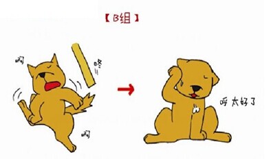 刚开始,扩音器响的时候,被电到的狗会在笼子里四处乱窜,试图找到逃脱的出口。可是在试过几次都没有成功之后,狗就绝望了,放弃了挣扎。虽然扩音器响了,还是有电流通过,但狗只是躺在那里默默地忍受痛苦,而不再极力逃脱了。于是塞利格曼把狗挪到了另一个更大的笼子里,笼子的中间用隔板隔开,一边通电,一边没有通电,但隔板的高度是狗可以轻易跳过去的。塞利格曼把另一条从来没有经过实验的对照组狗,和先前的那条实验狗一起关进了通电的一边,当扩音器响起,笼子通电时,对照组狗在受到短暂的惊吓之后,立刻奋起一跳,逃到了安全的那一边。可是那条可怜的实验狗,却眼睁睁地看着伙伴轻易地跳到笼子的另一边,自己却卧倒在笼子里,再也不肯尝试了。