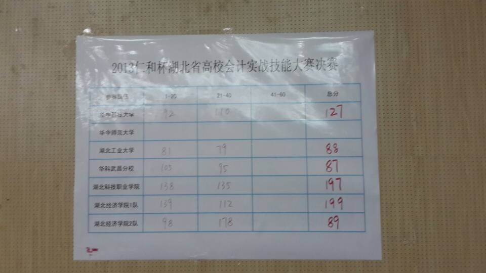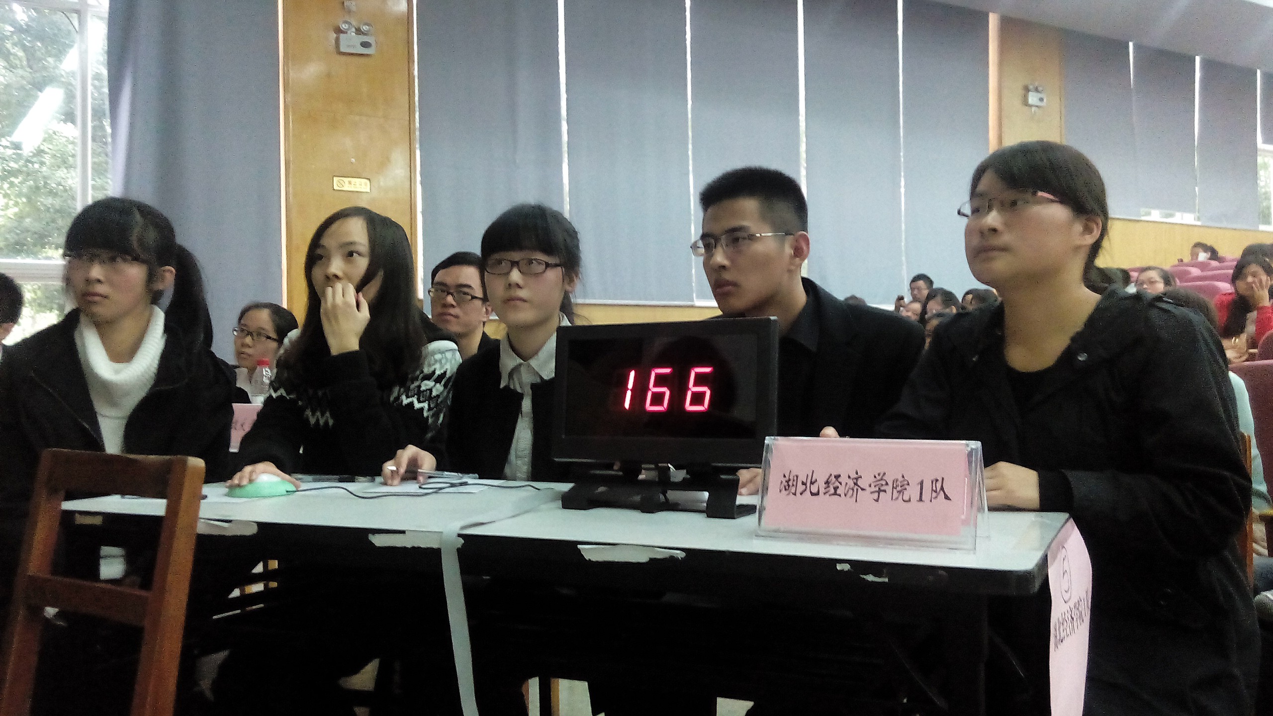 比赛逐渐进入尾声,一直处于领先地位的湖经1队果然不负众望,以2分的微弱优势领先湖北科技职业学院代表队,夺得冠军,湖北科技职业学院代表队和华中科技大学代表队分别夺得亚军和季军。